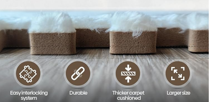 Alfombra suave, acolchada y antideslizante. Ideal para bebés: segura, acogedora y fácil de instalar.